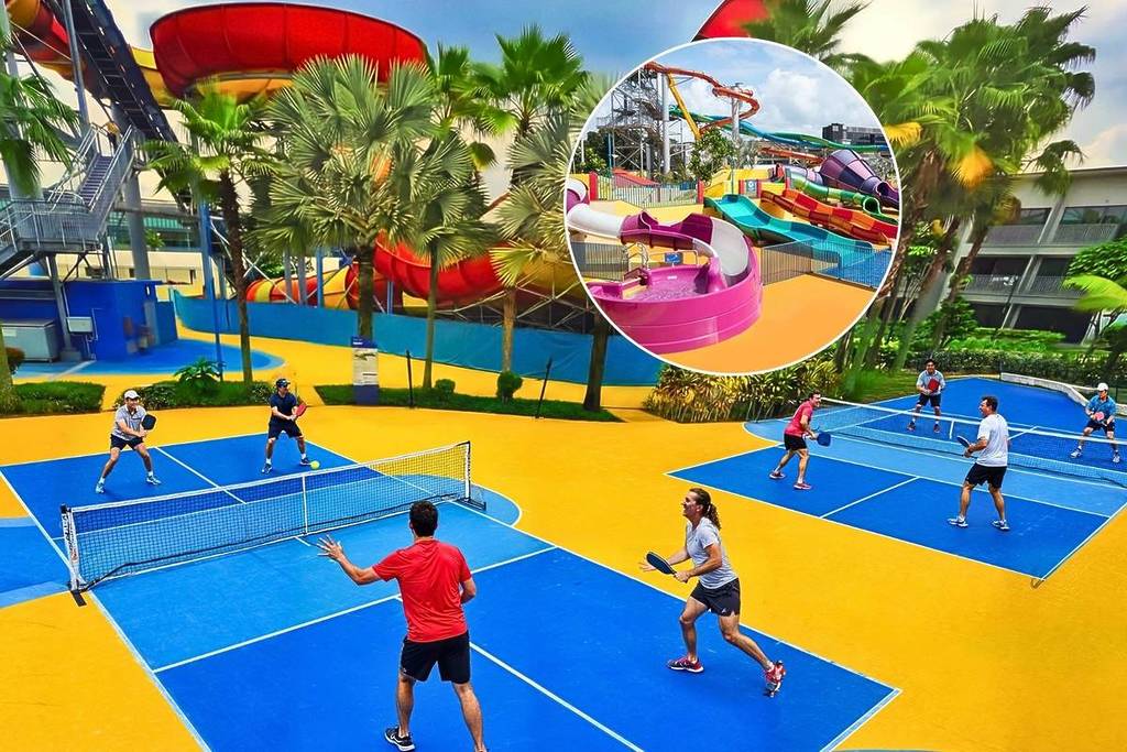 Singaporeans just can’t get enough of pickleball as the easy-to-learn sport takes over parks, community clubs, and now even waterparks. Over the past year, trendy courts have popped up everywhere, from rooftop lounges to shopping malls, to even Singapore’s first nightlife pickleball launching in February 2026, and a unique pickleball cruise to Thailand…the paddle sport has been carefully blended with lifestyle experiences. And in this latest twist, you can now enjoy a game surrounded by tropical slides and splash zones—thanks to the launch of Singapore’s first pickleball court inside a waterpark. Here’s what to expect.